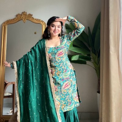 Stunning traditional Indian ethnic wear featuring beautiful embroidery and accessories. Perfect for festive occasions and cultural celebrations.